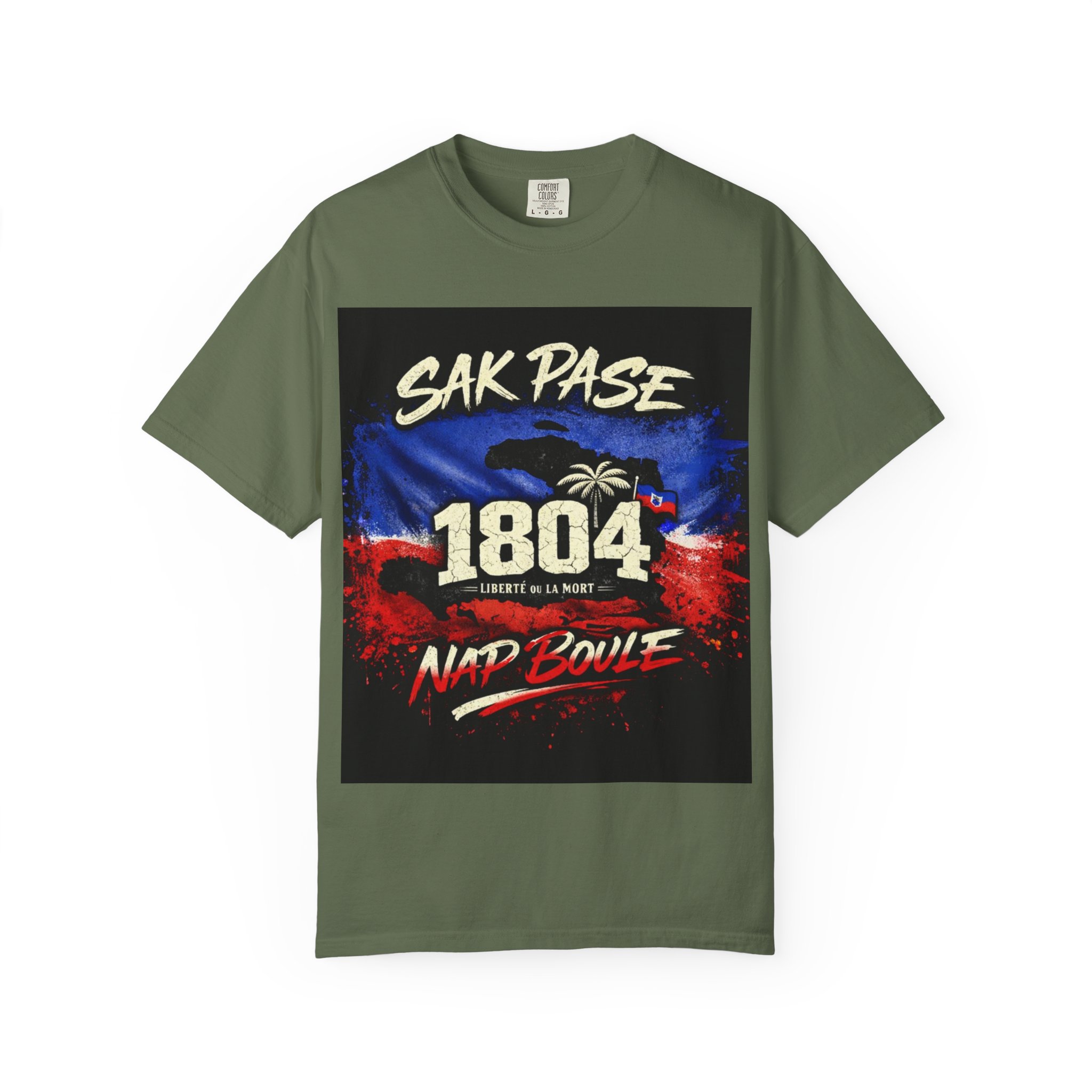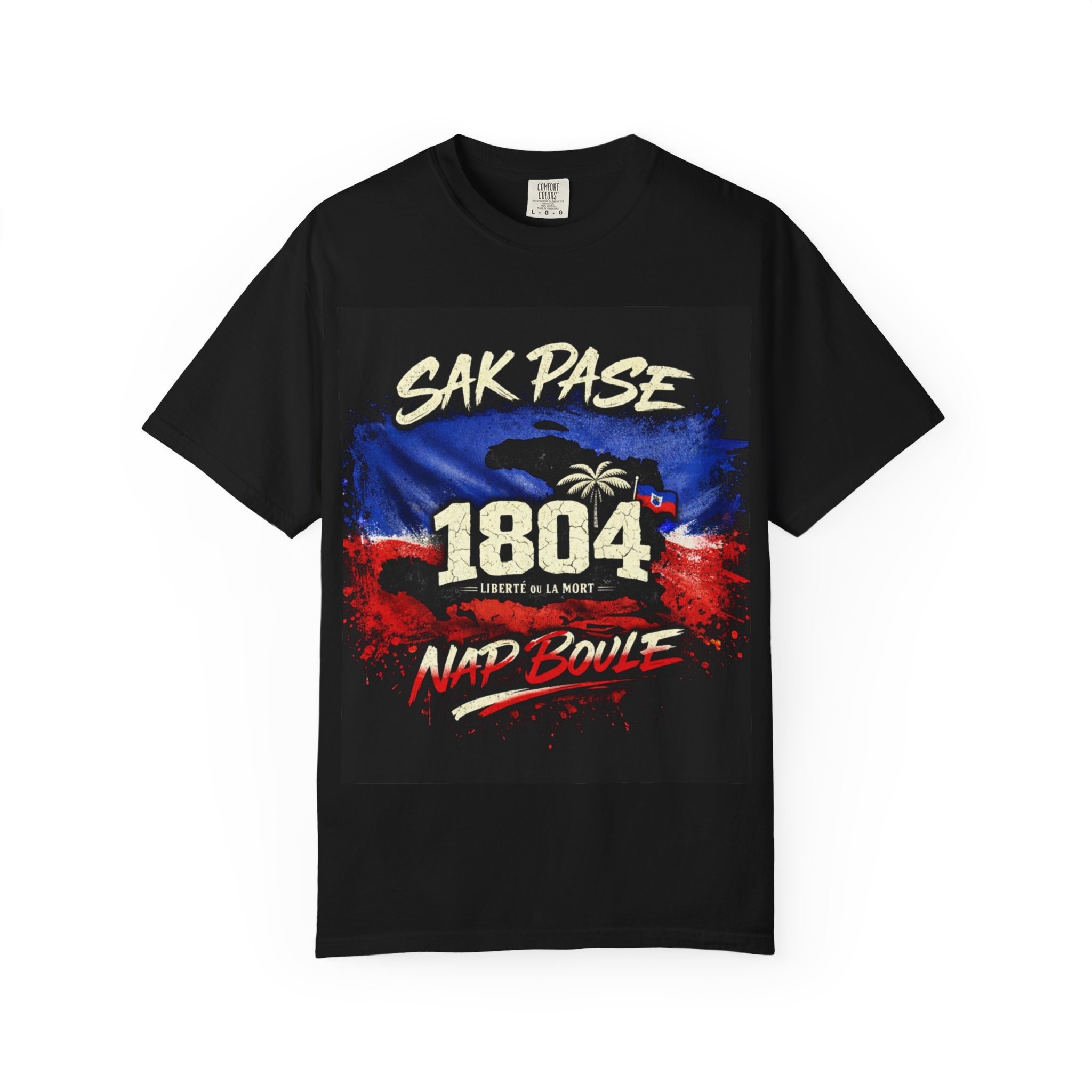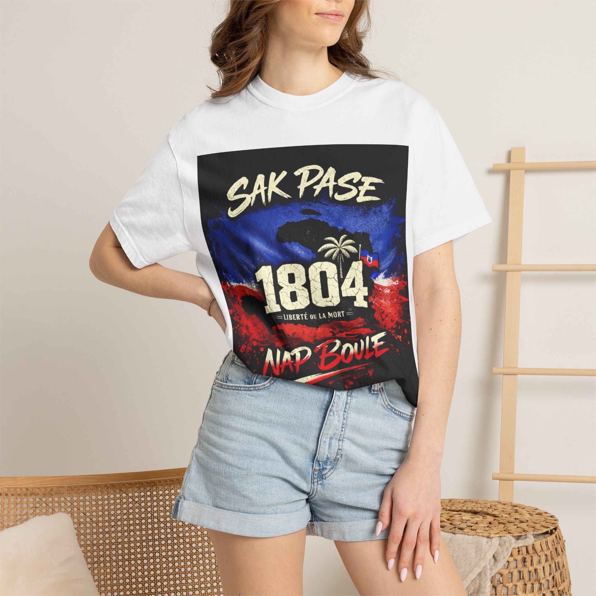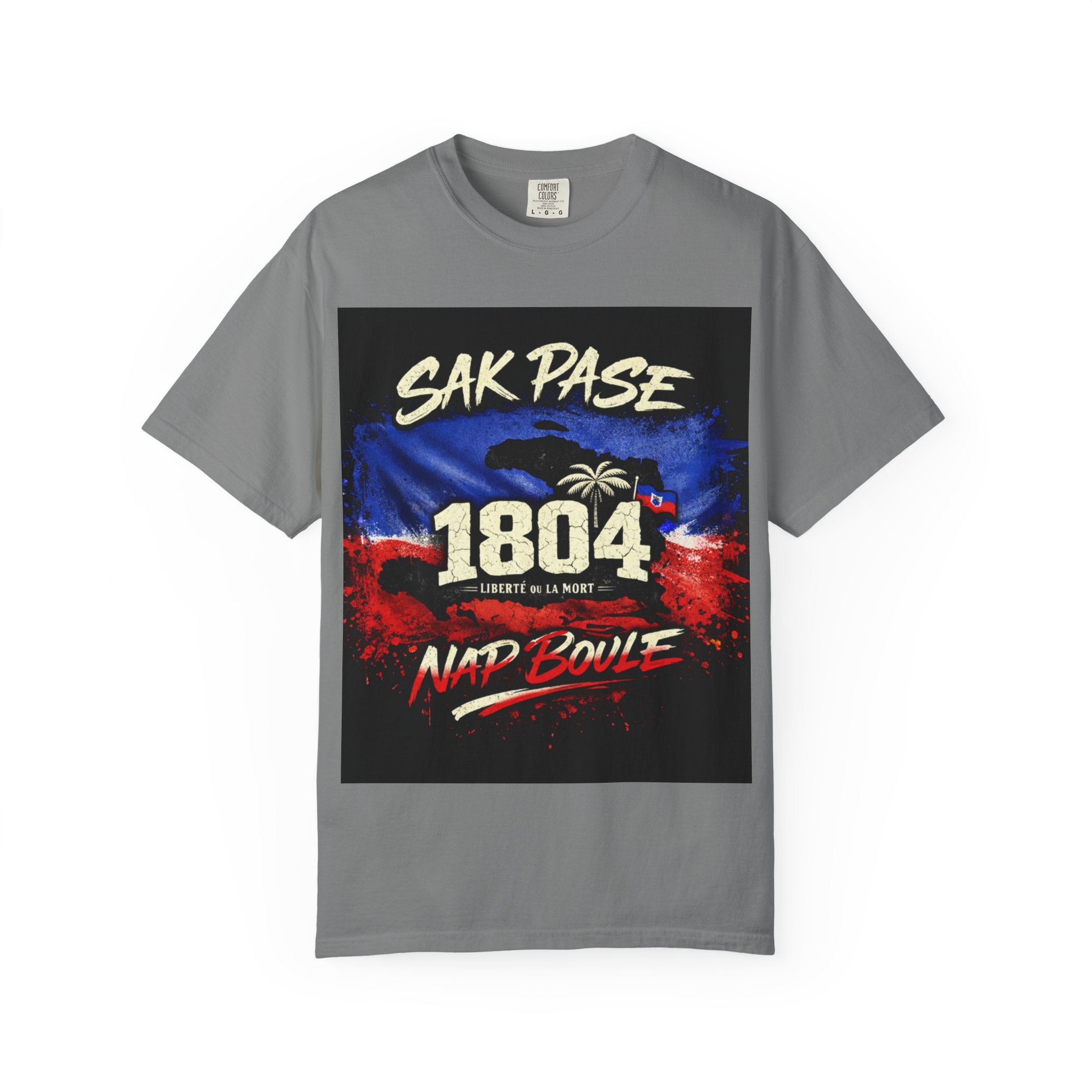 Wear history and pride with a lived-in, comfortable tee that feels like it’s already part of your story. This heavyweight, garment-dyed shirt brings a bold, painterly graphic front-and-center—deep navy and red brushstrokes framing the striking “1804” crest and hand-lettered phrases. It sits relaxed on the body, the soft, pre-shrunk cotton breaking in beautifully over time. Reach for it on long days in the city, during community gatherings, or when you want to carry a meaningful statement without shouting. The sewn-in label and durable double-needle stitching mean this shirt travels and washes like a favorite, not a fragile souvenir.