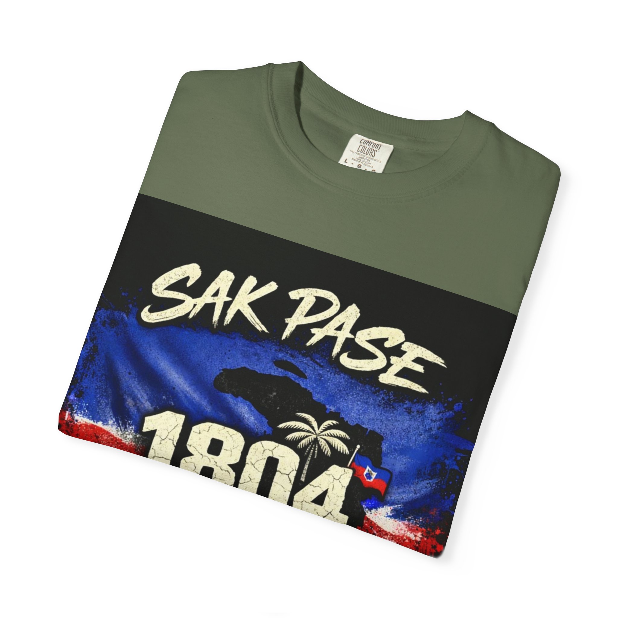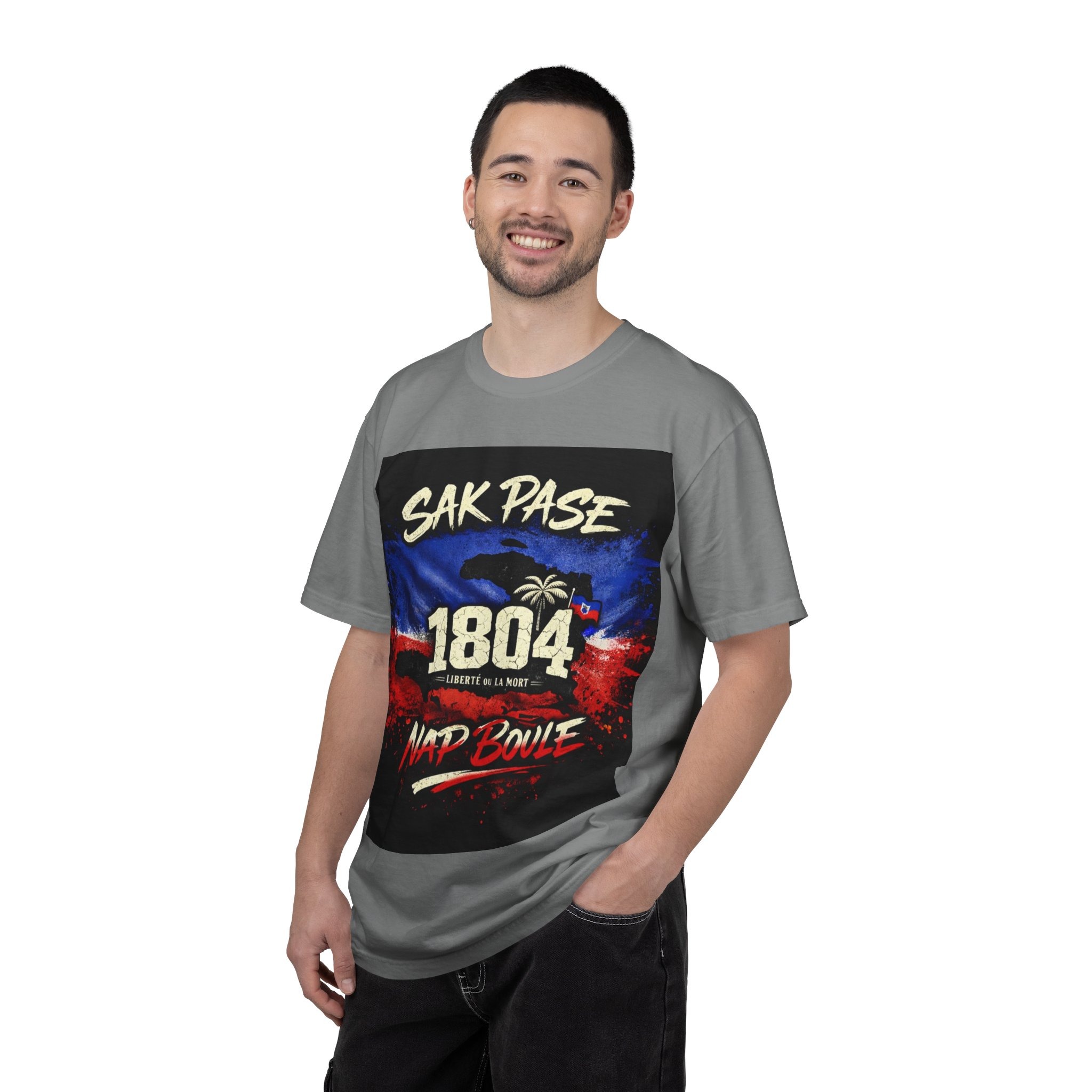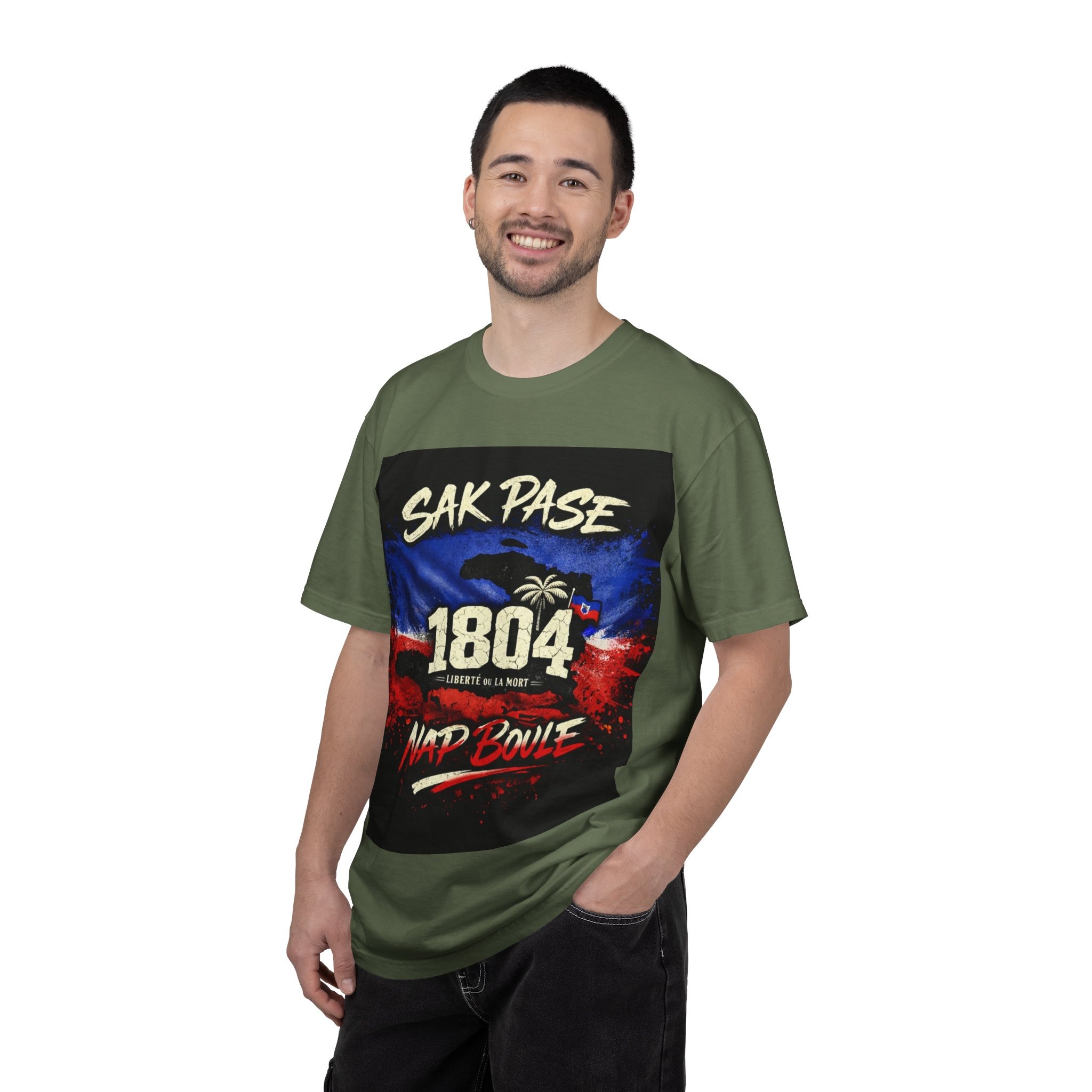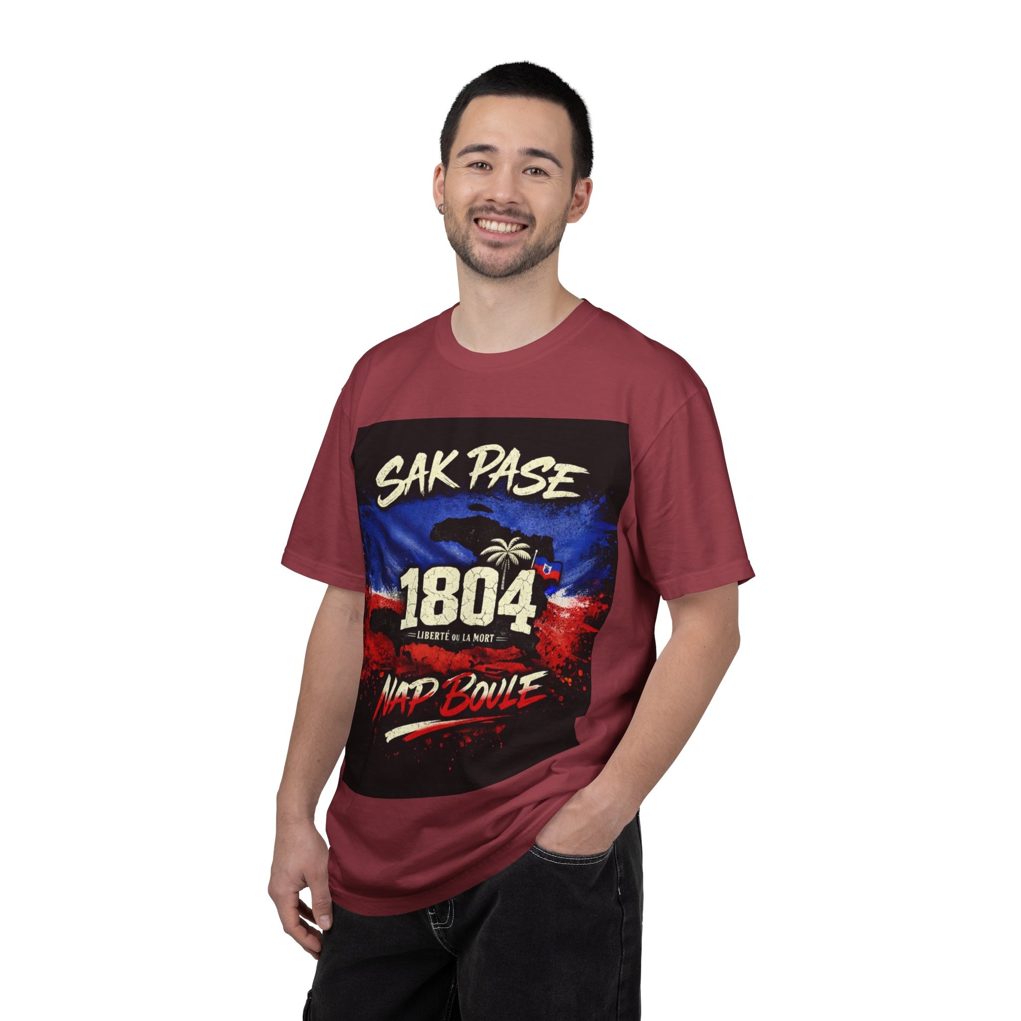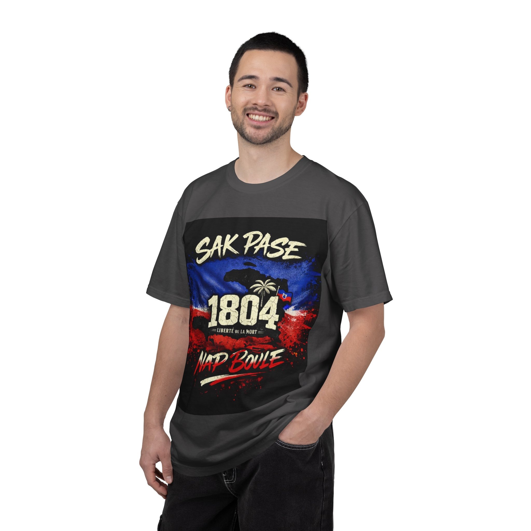 Wear history and pride with a lived-in, comfortable tee that feels like it’s already part of your story. This heavyweight, garment-dyed shirt brings a bold, painterly graphic front-and-center—deep navy and red brushstrokes framing the striking “1804” crest and hand-lettered phrases. It sits relaxed on the body, the soft, pre-shrunk cotton breaking in beautifully over time. Reach for it on long days in the city, during community gatherings, or when you want to carry a meaningful statement without shouting. The sewn-in label and durable double-needle stitching mean this shirt travels and washes like a favorite, not a fragile souvenir.