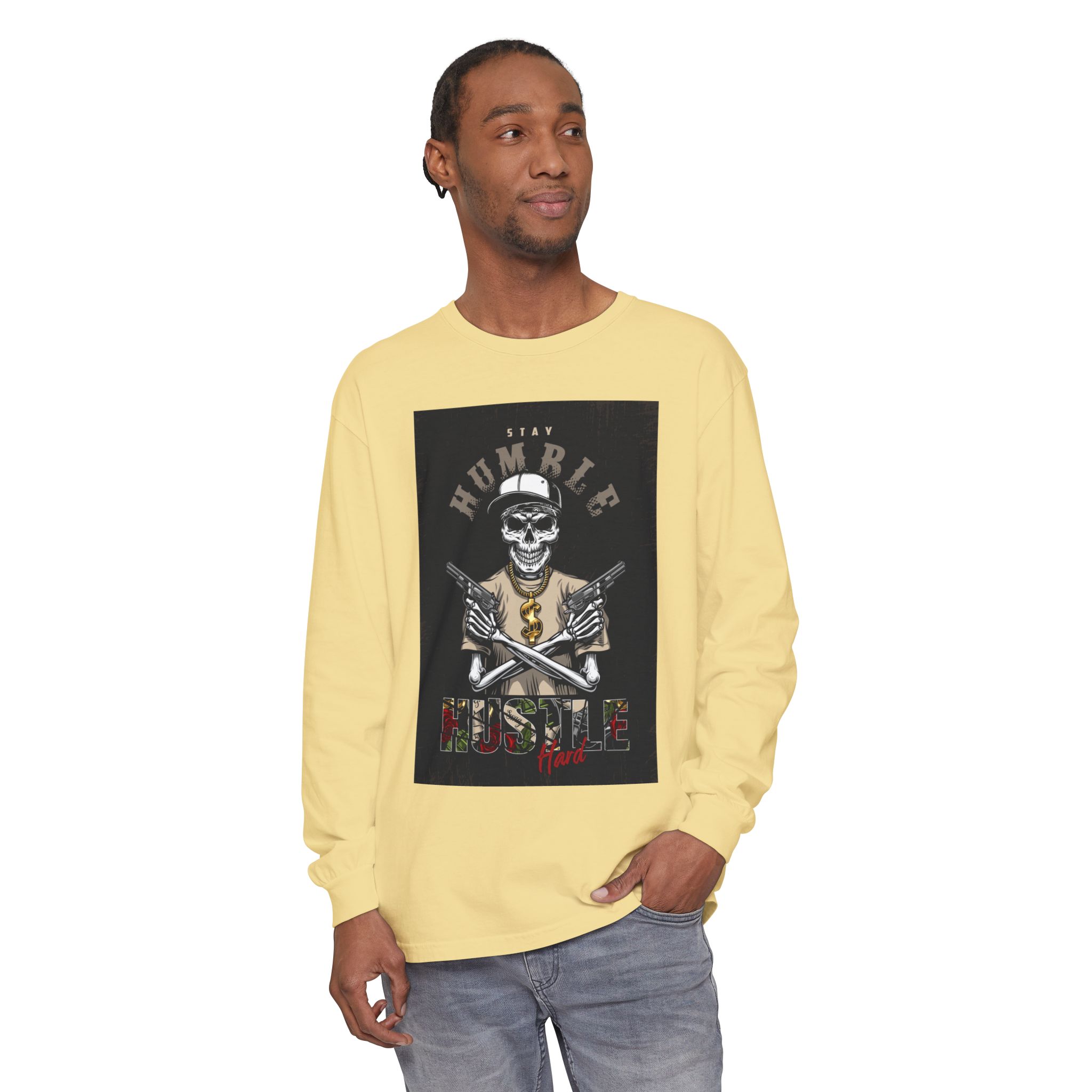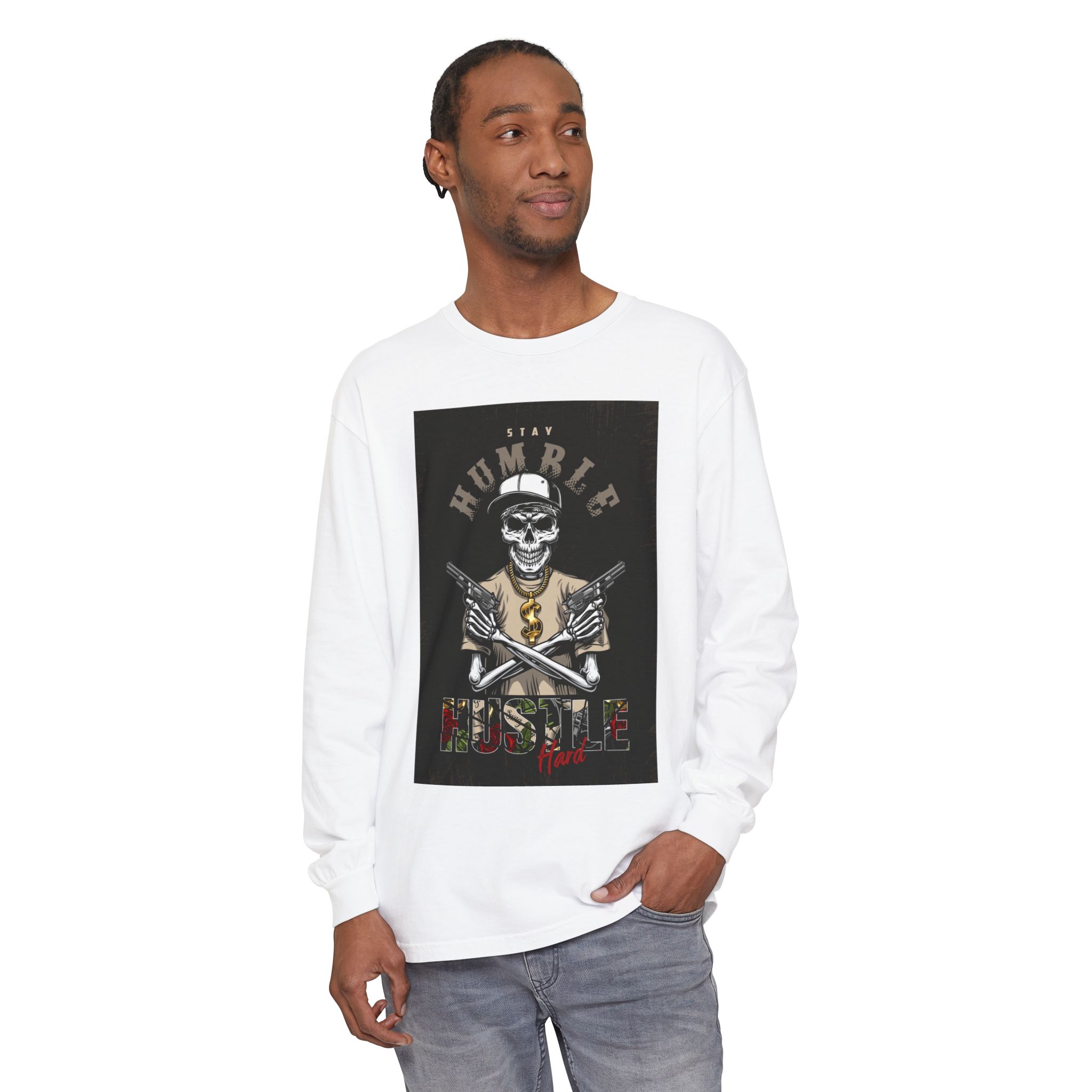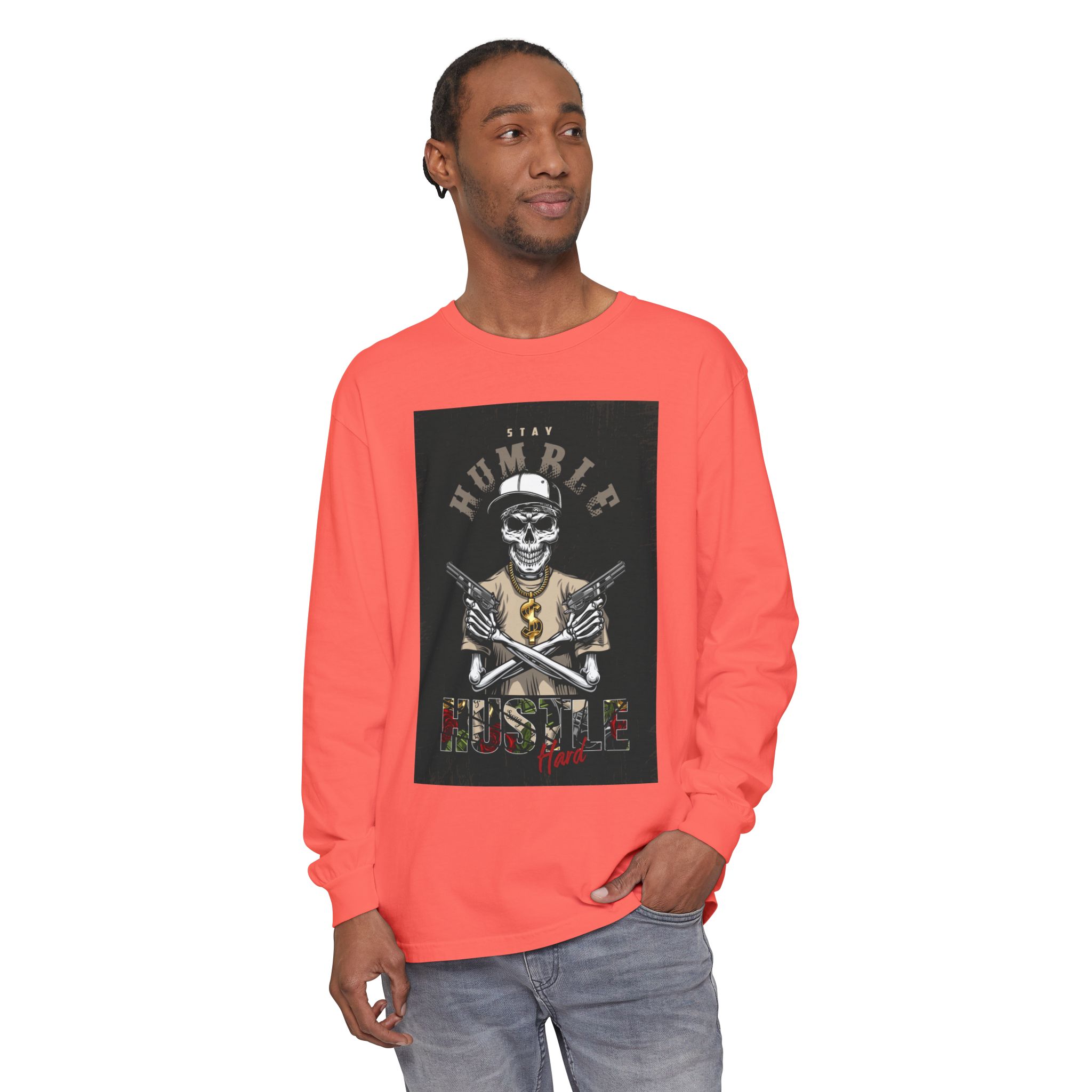 This unisex long sleeve t-shirt exudes a laid-back vibe, perfect for everyday wear or casual outings. The garment-dyed fabric offers a soft texture and rich hue, making it both stylish and comfortable. Ideal for those who appreciate unique, artistic designs, this piece serves as a perfect conversation starter. It’s suitable for anyone looking to express their personality, especially during relaxed gatherings, casual meetings, or festive celebrations. Pair it with jeans or joggers for a chic, effortless look, making it a great addition to your wardrobe for holidays, birthdays, or even just cozy weekends at home.