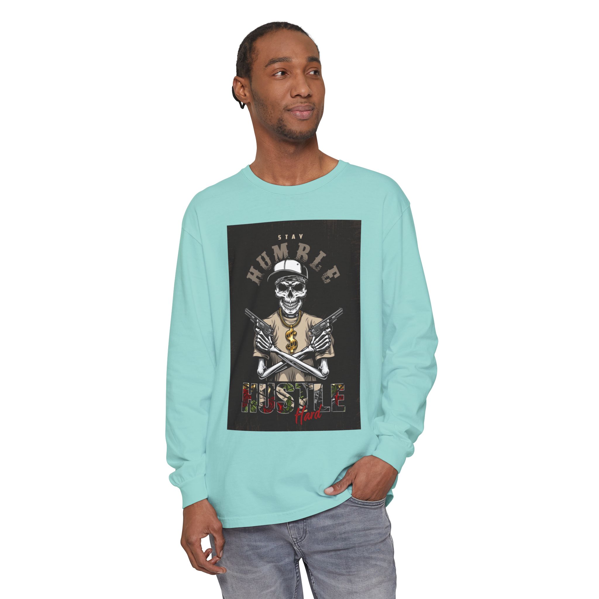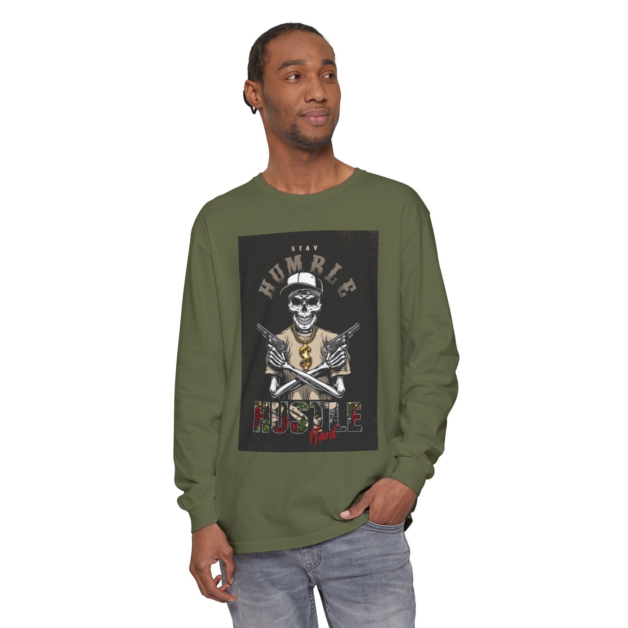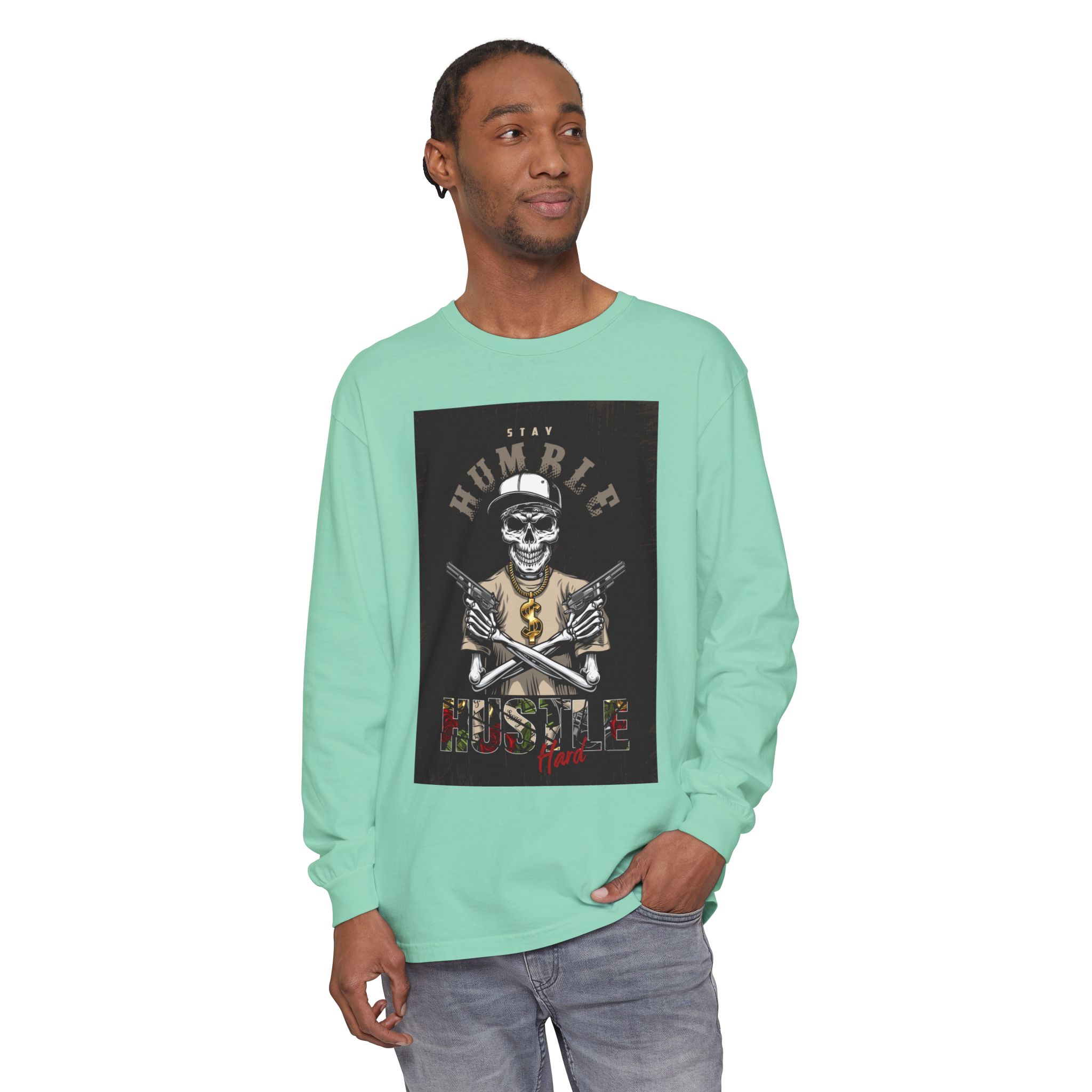 This unisex long sleeve t-shirt exudes a laid-back vibe, perfect for everyday wear or casual outings. The garment-dyed fabric offers a soft texture and rich hue, making it both stylish and comfortable. Ideal for those who appreciate unique, artistic designs, this piece serves as a perfect conversation starter. It’s suitable for anyone looking to express their personality, especially during relaxed gatherings, casual meetings, or festive celebrations. Pair it with jeans or joggers for a chic, effortless look, making it a great addition to your wardrobe for holidays, birthdays, or even just cozy weekends at home.
