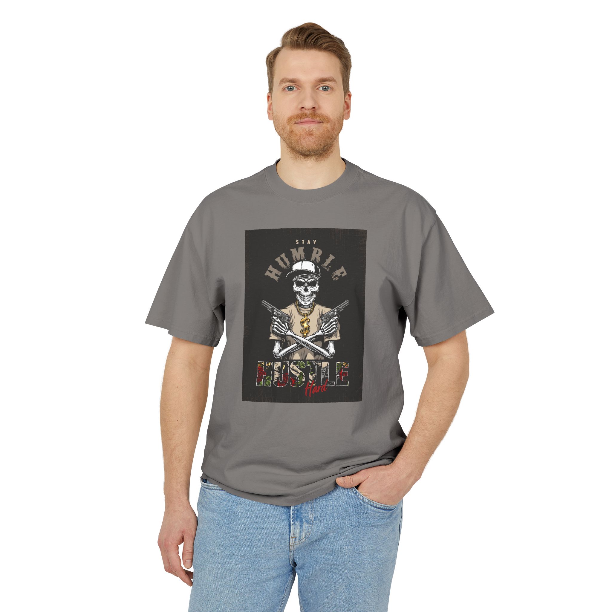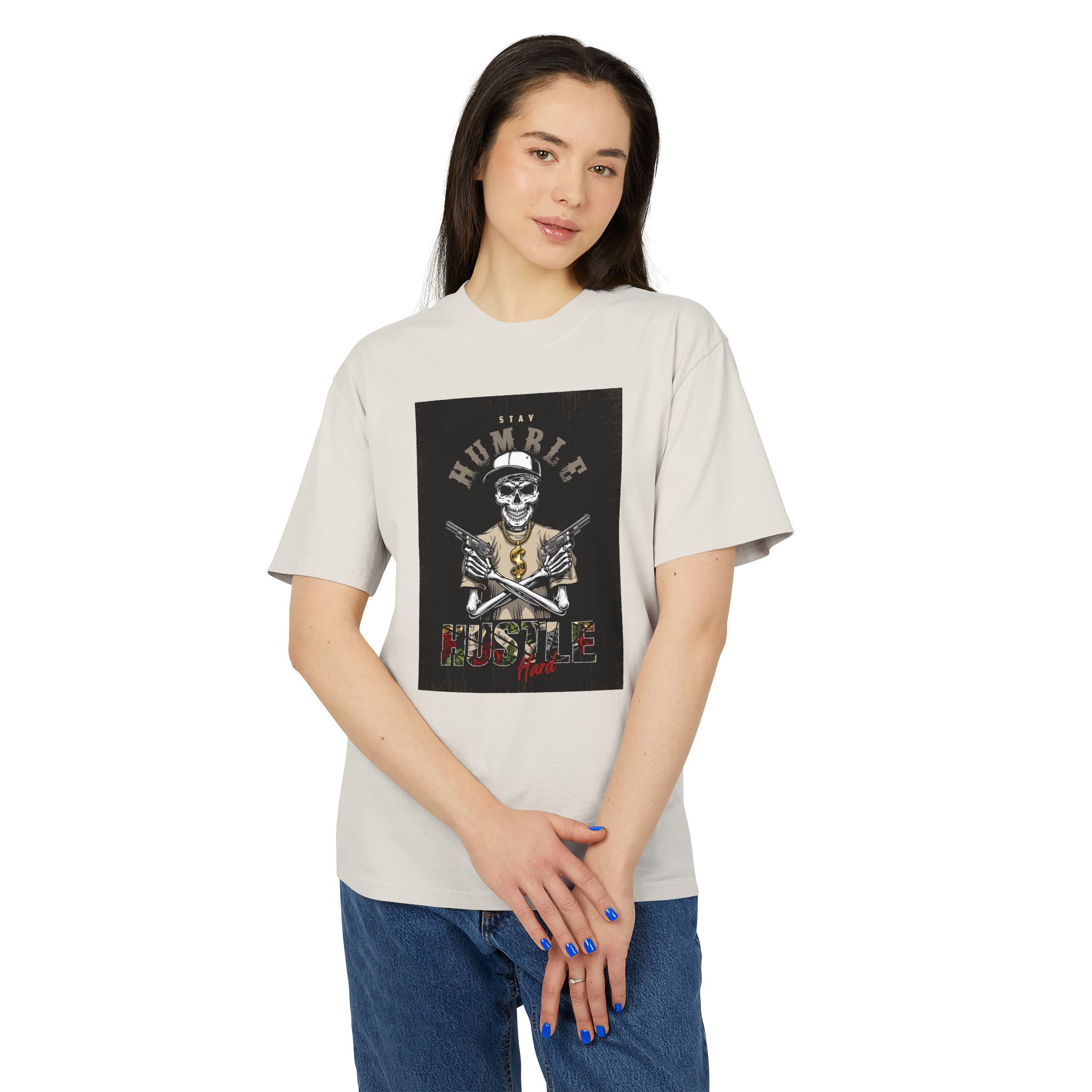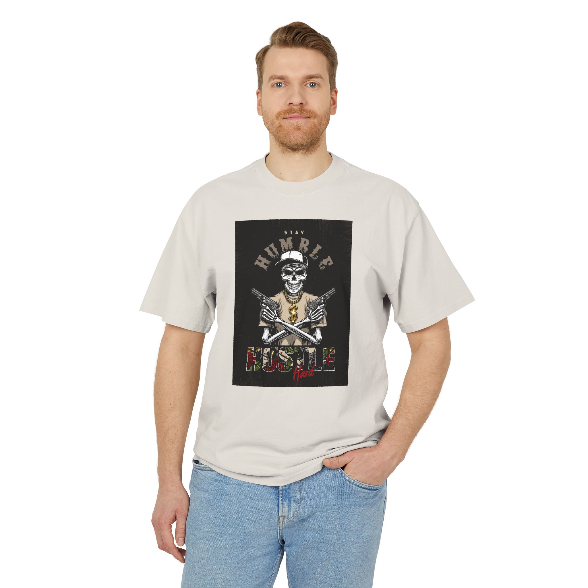 Home Apparel Unisex Heavy Faded Tee: Humble Hustle Skull Shirt, Casual Wear, Gift for Creatives, Streetwear Style, Everyday Comfort