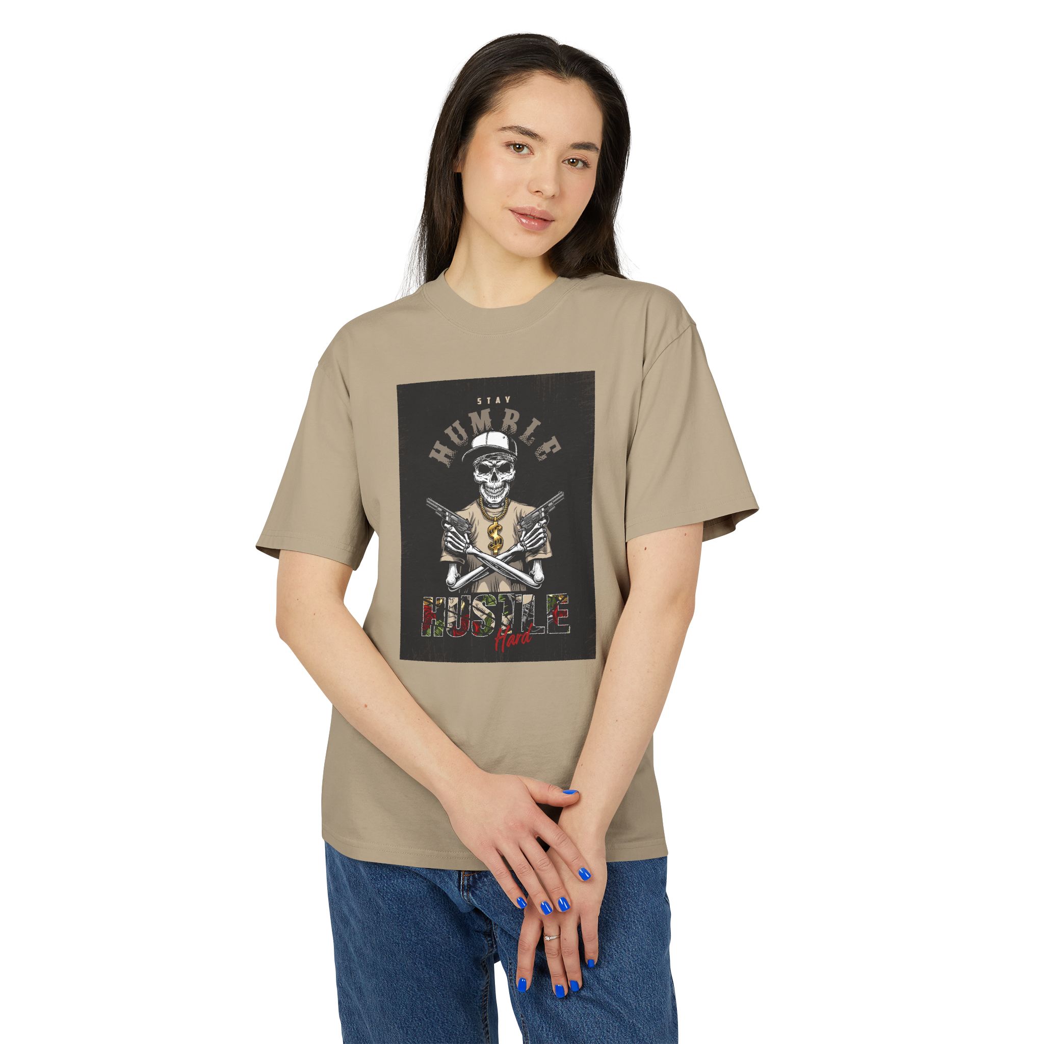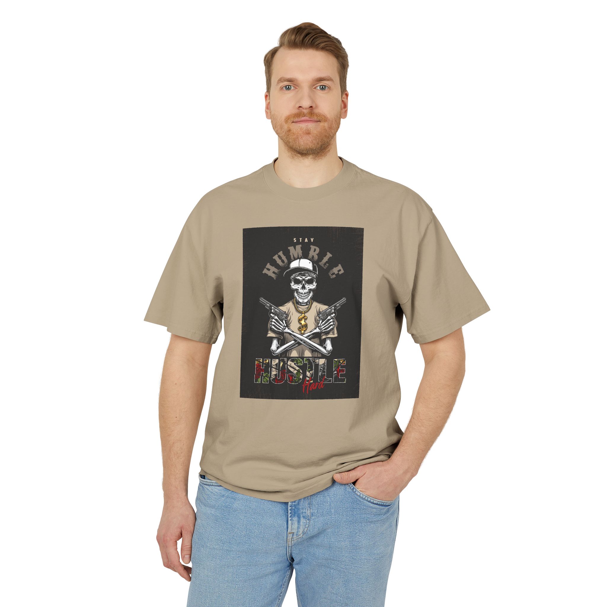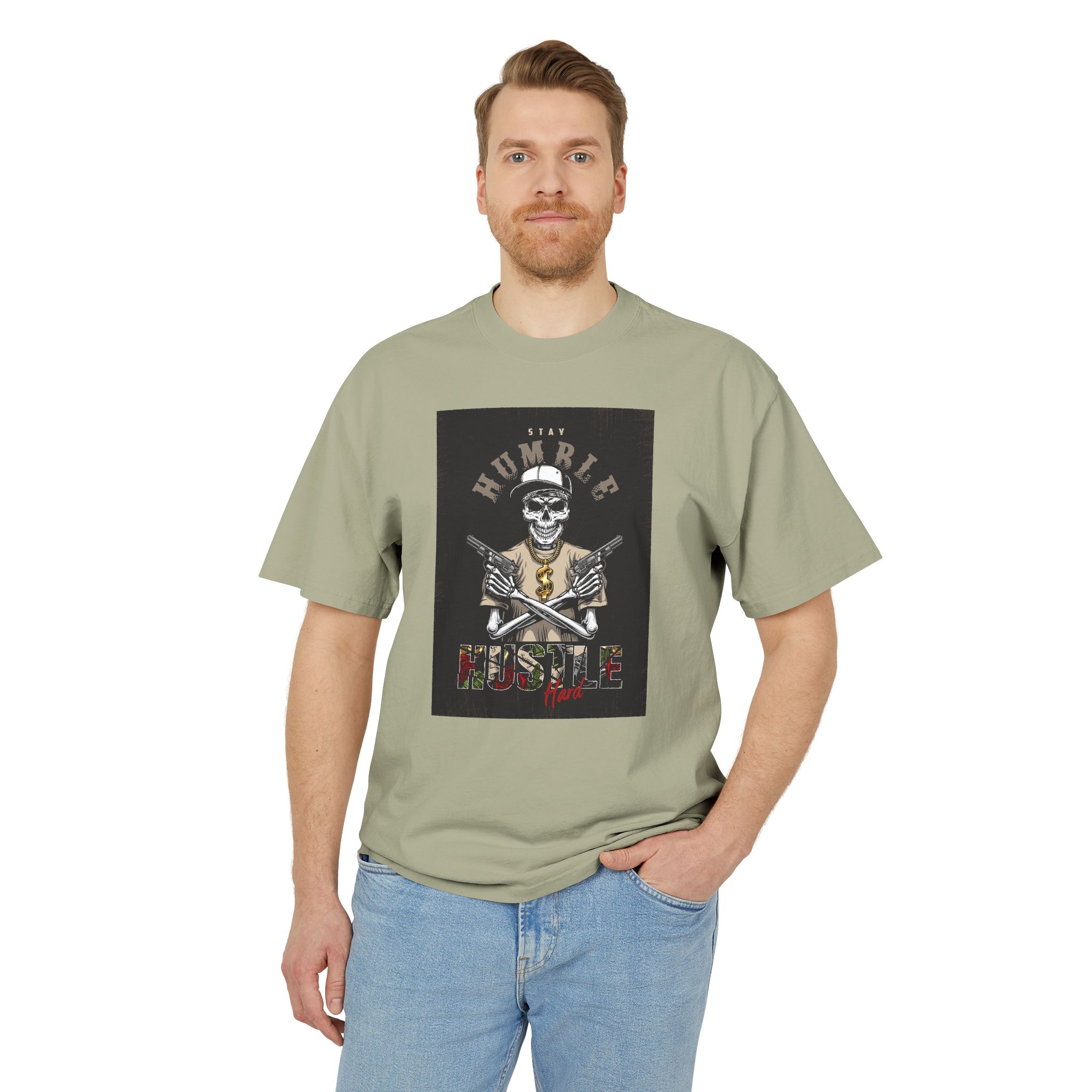 Home Apparel Unisex Heavy Faded Tee: Humble Hustle Skull Shirt, Casual Wear, Gift for Creatives, Streetwear Style, Everyday Comfort